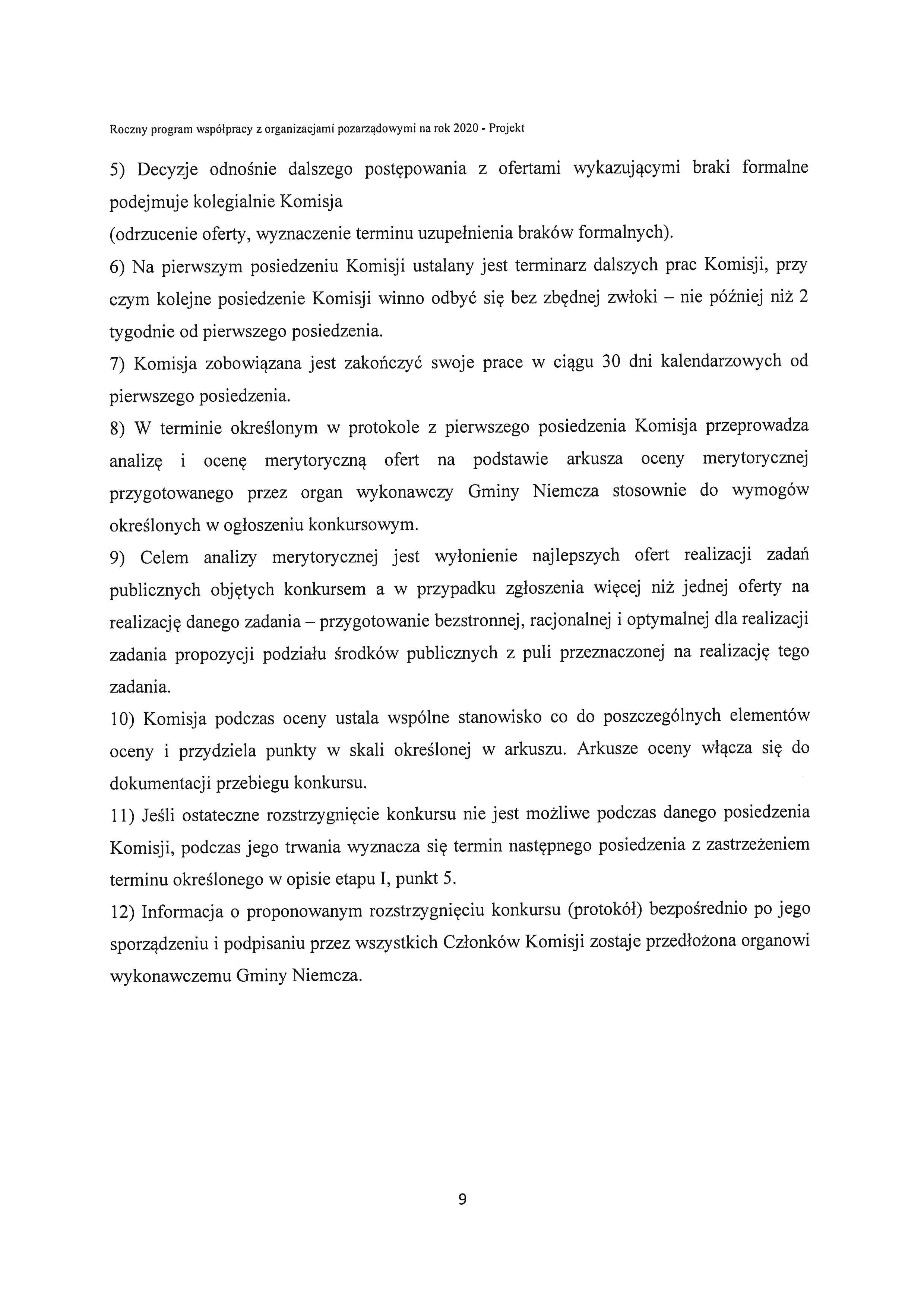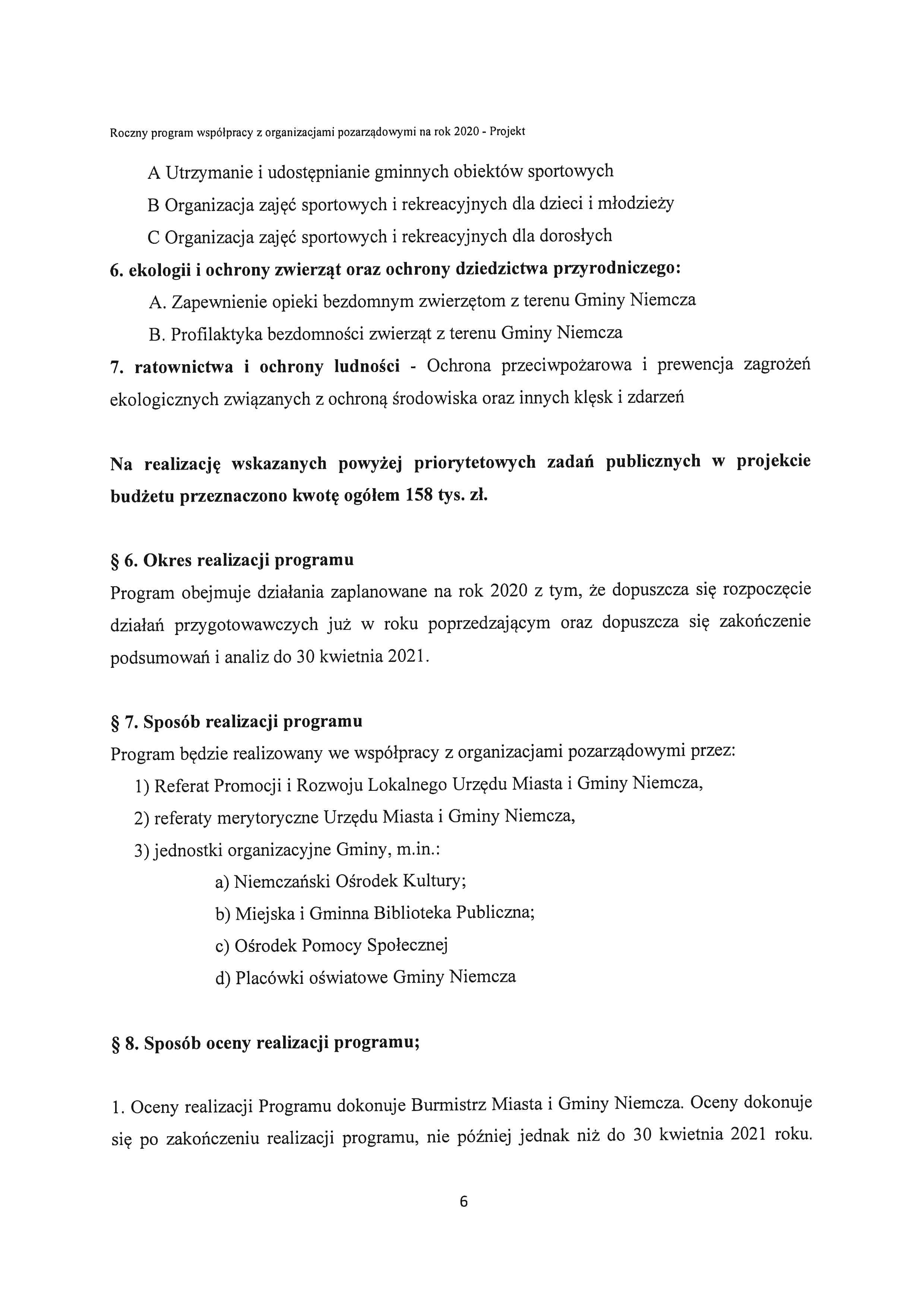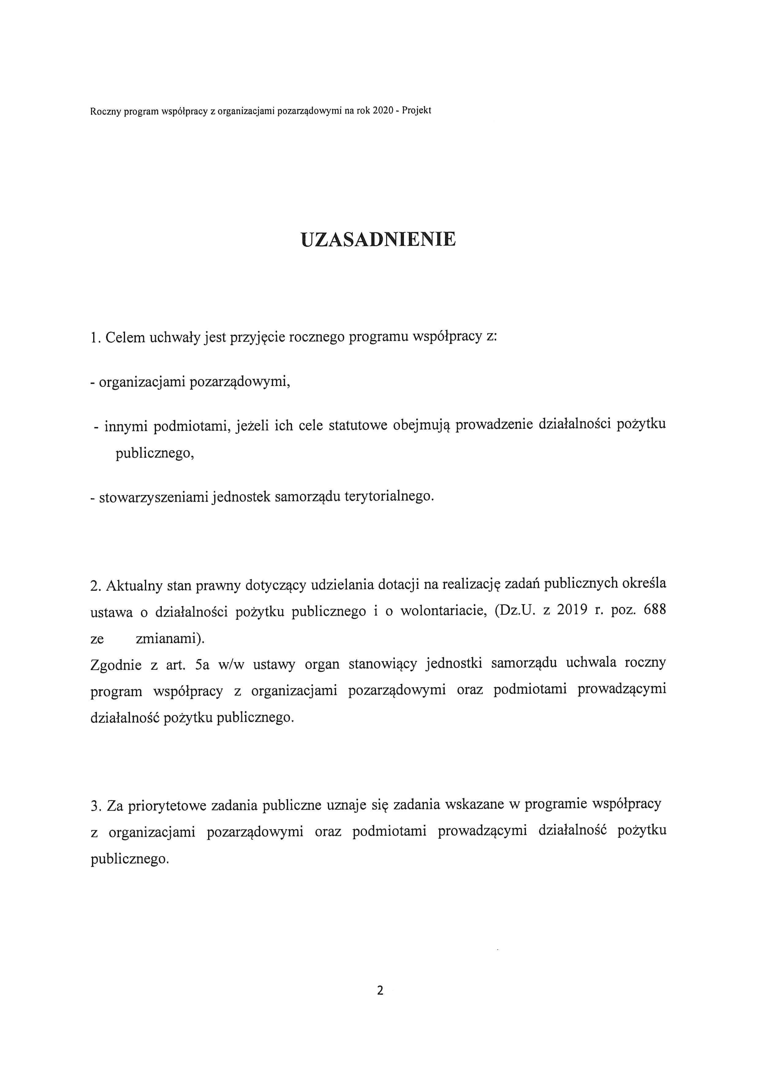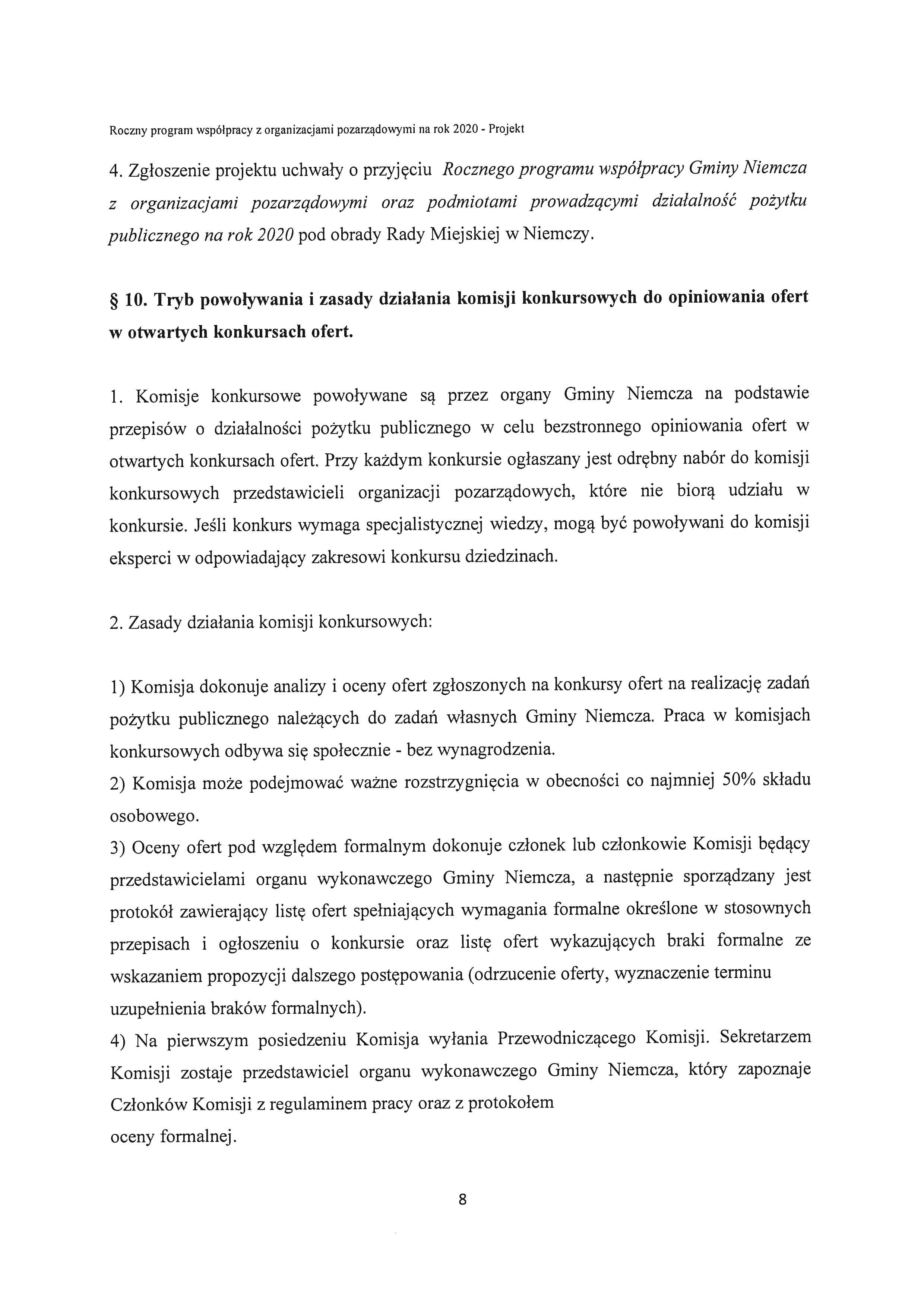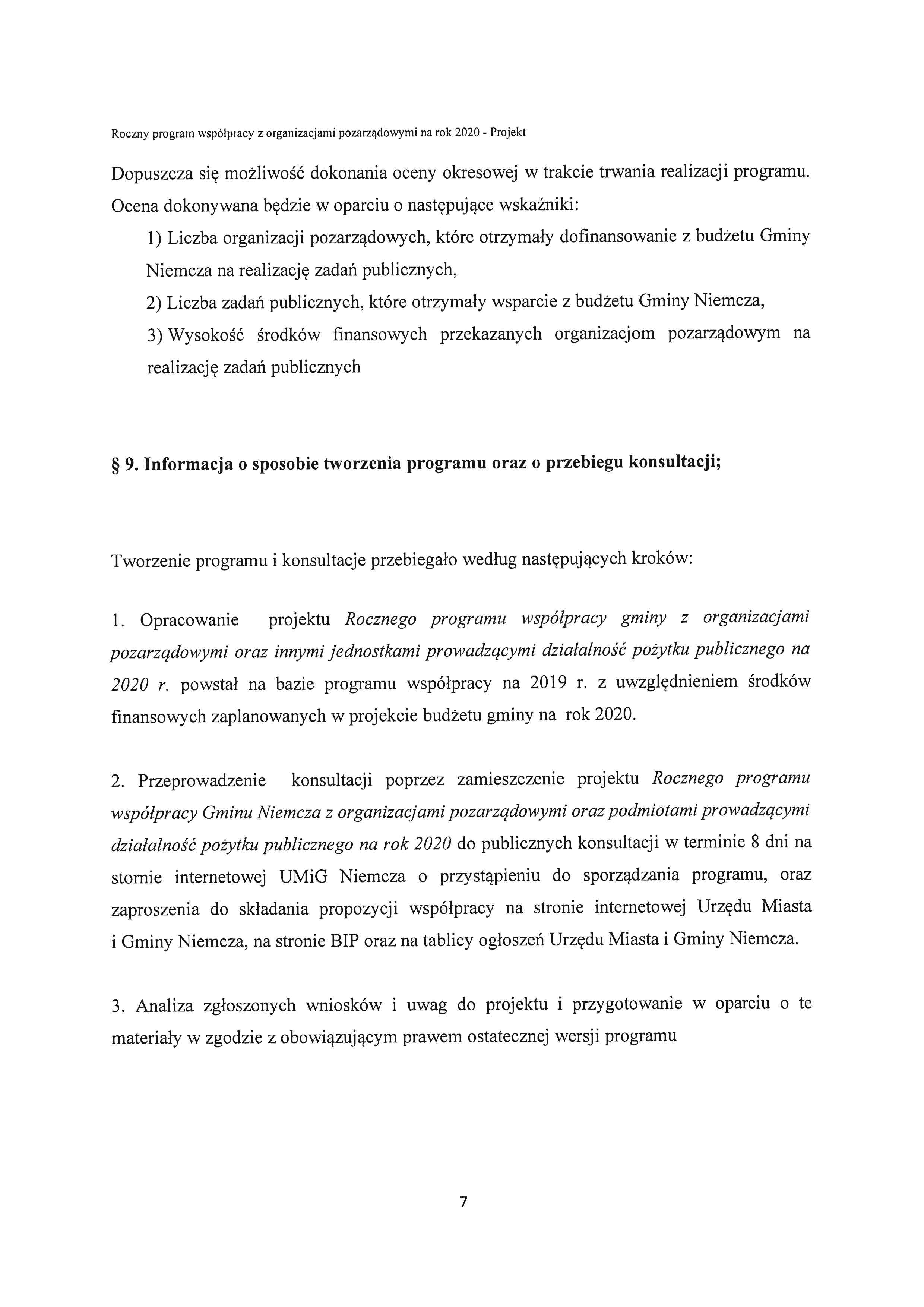 Projekt rocznego programu współpracy Gminy Niemcza z organizacjami pozarządowymi oraz podmiotami prowadzącymi działalność pożytku publicznego na rok 2020